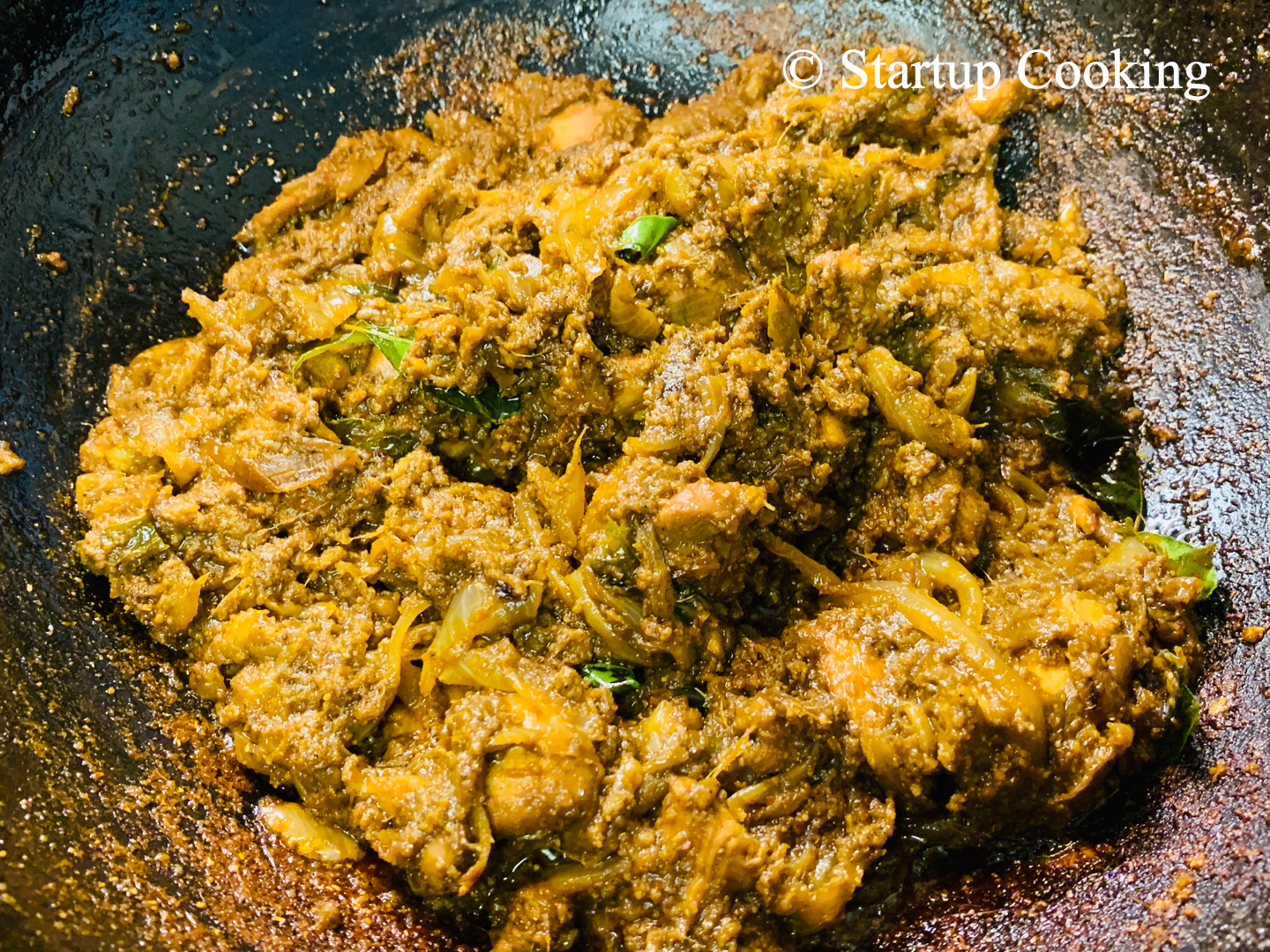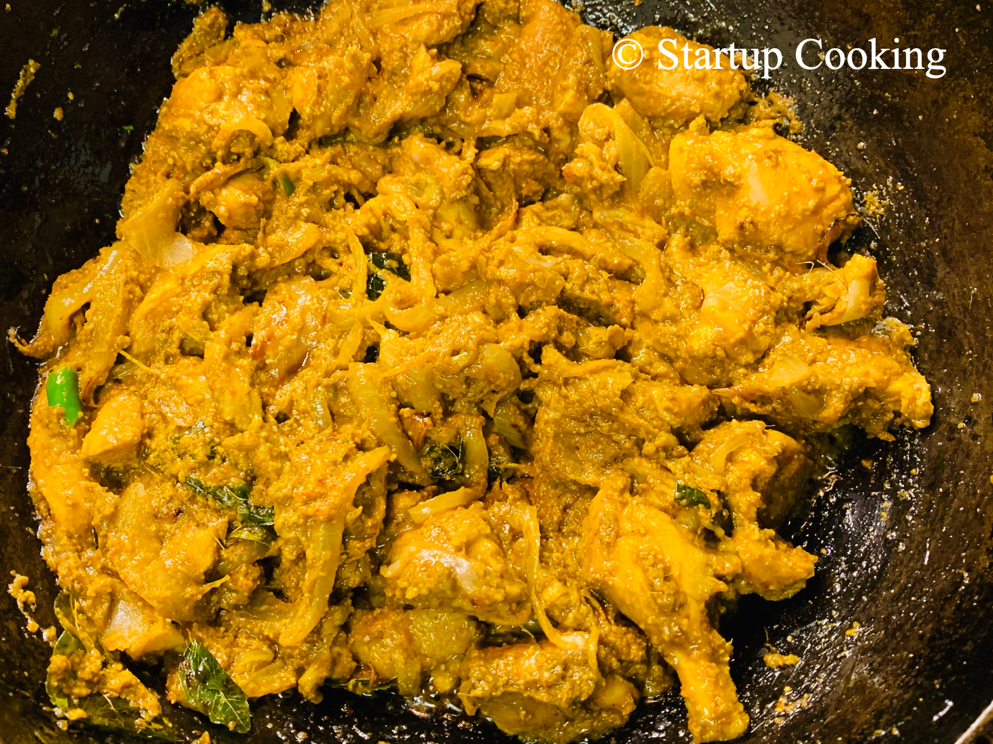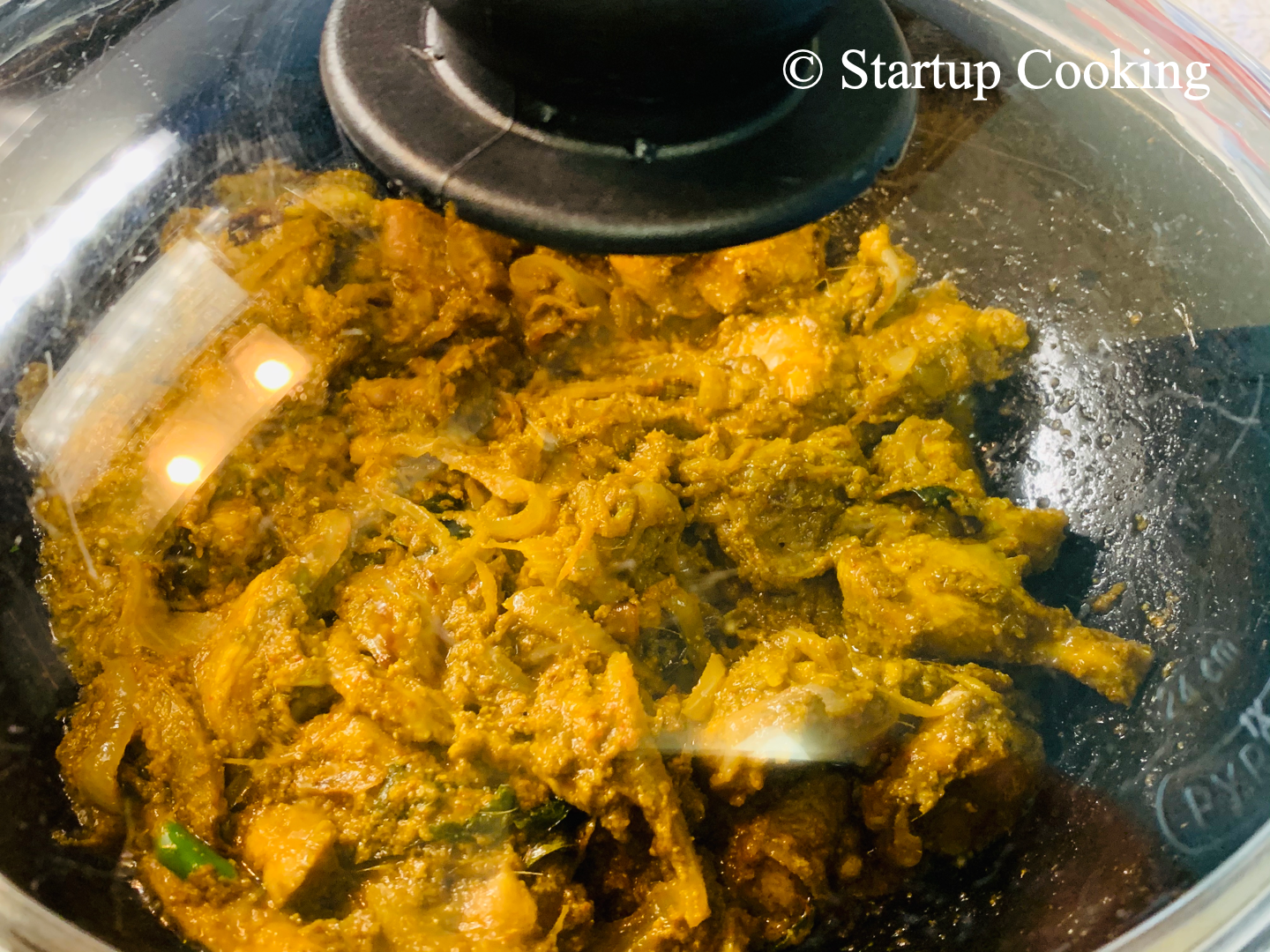 - cover and cook in low flame for 15 minutes (chicken starts to release the water ), stir occasionally.