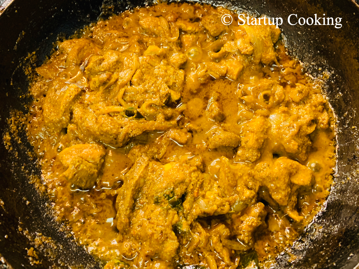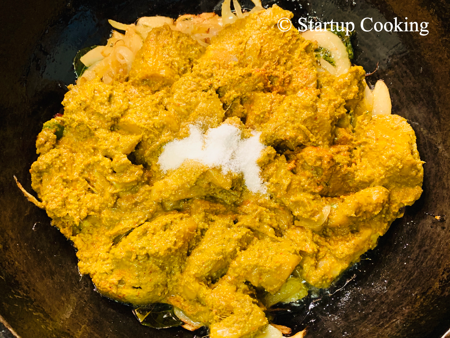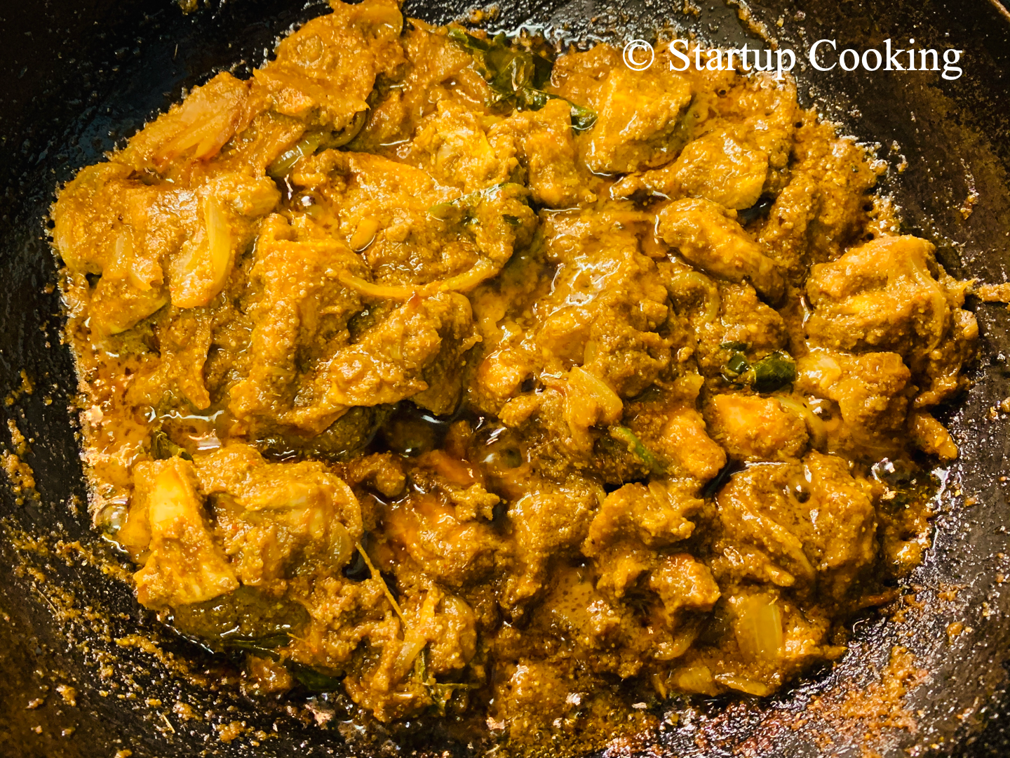 - cover and cook in low flame for 15 minutes (chicken starts to release the water ), stir occasionally.