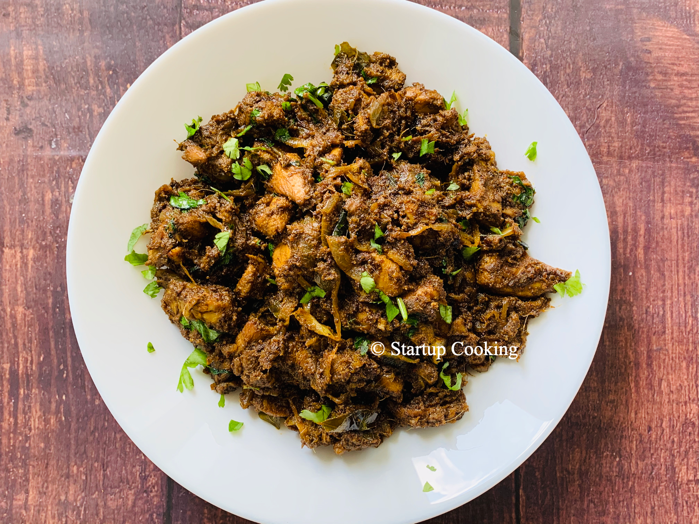 Chicken chukka is a dry curry that originates from Tamil Nadu, India. The key ingredient and the stand out flavour of any authentic chukka recipe are fresh curry leaves. Chicken chukka needs a minimal amount of whole spices, red chilli, coriander seeds, cumin seeds, cloves, cinnamon stick and cardamom pods, which tastes fantastic when prepared with chicken.