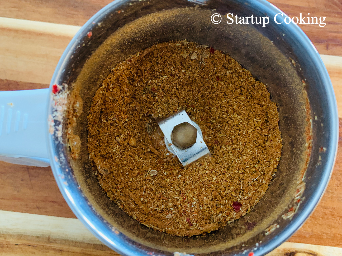 - in a mixer grinder, add red chilli, coriander seeds, cinnamon stick, cloves, cardamom pods and cumin seeds