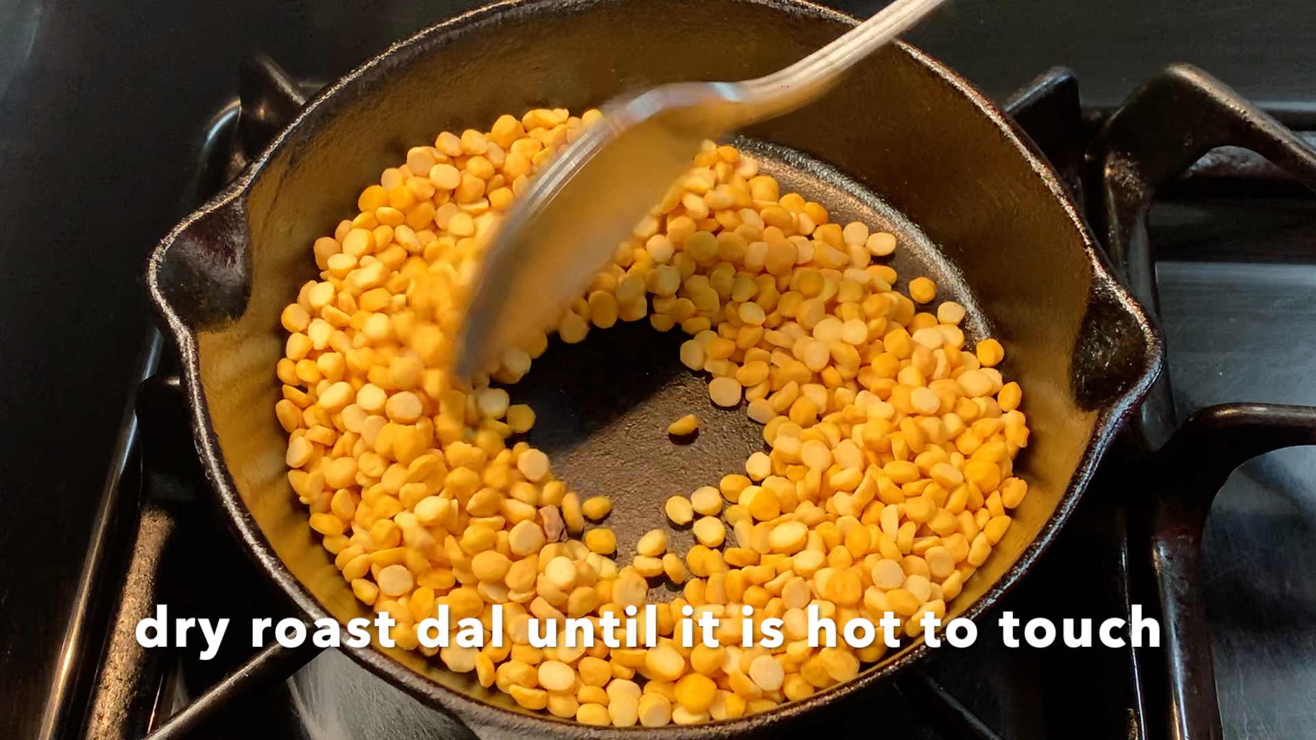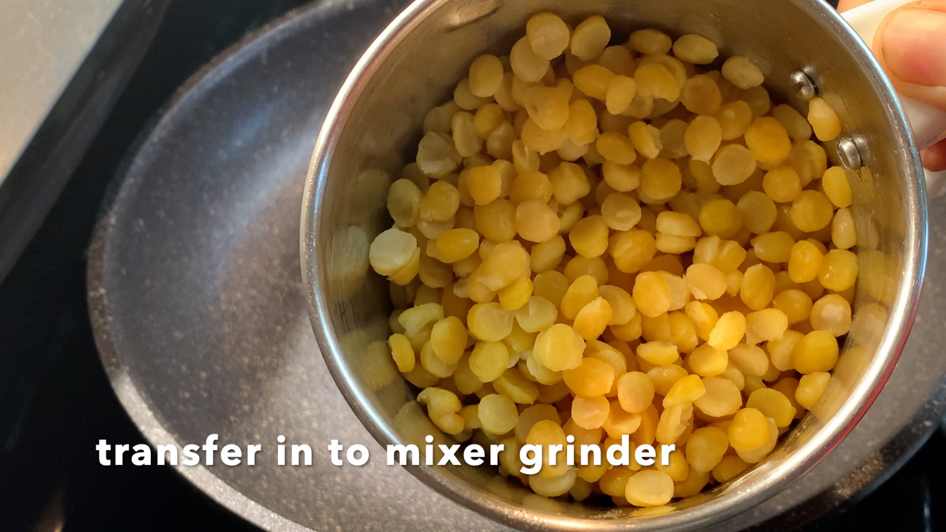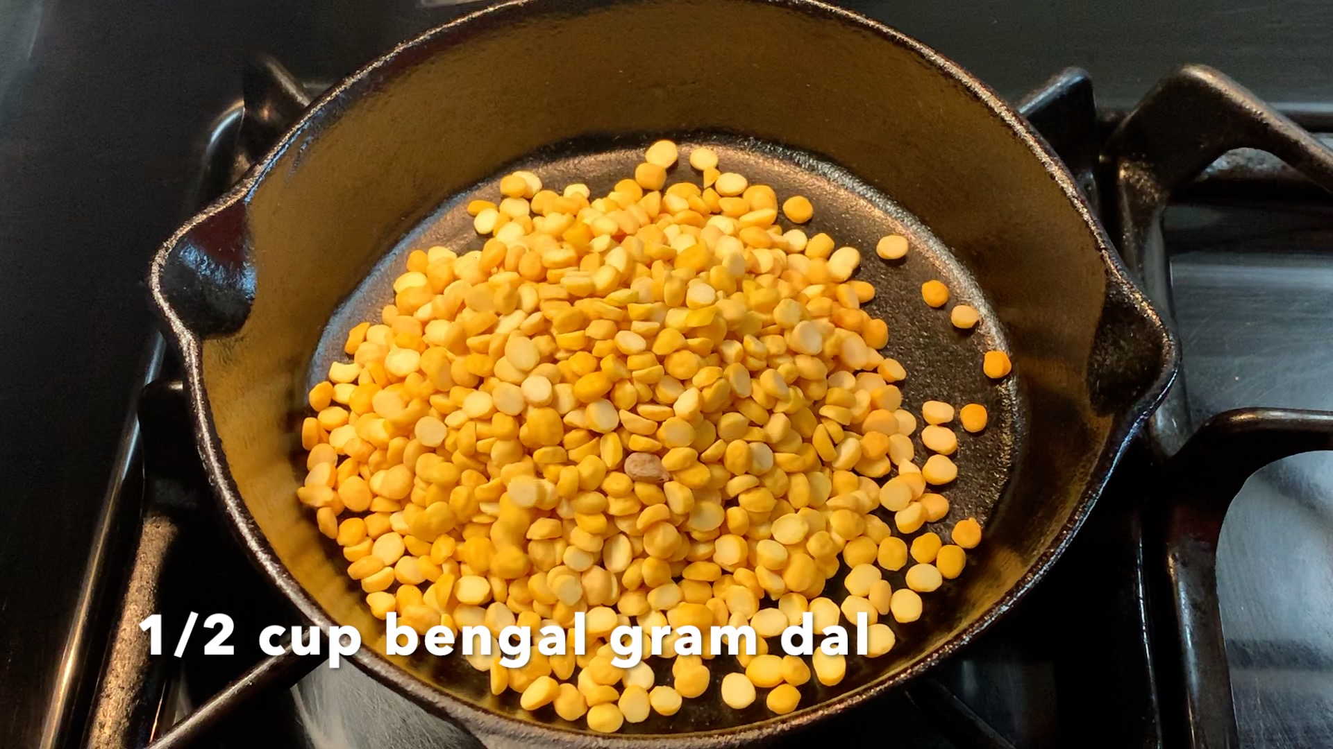 - dry roast bengal gram dal (kadalai paruppu) until it is hot to touch
