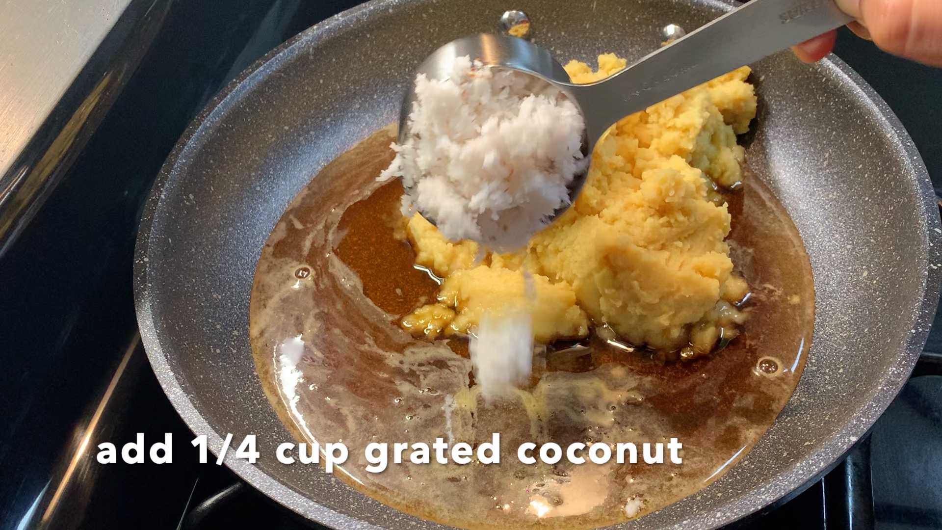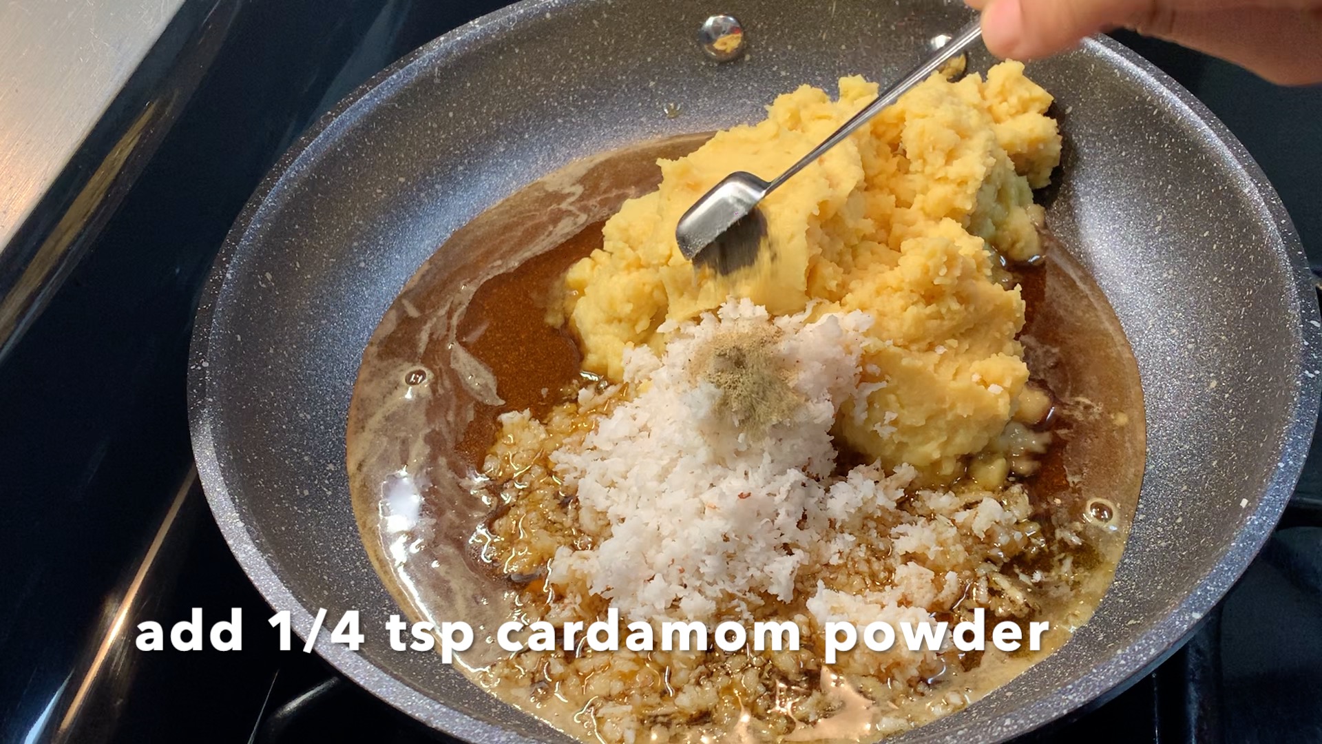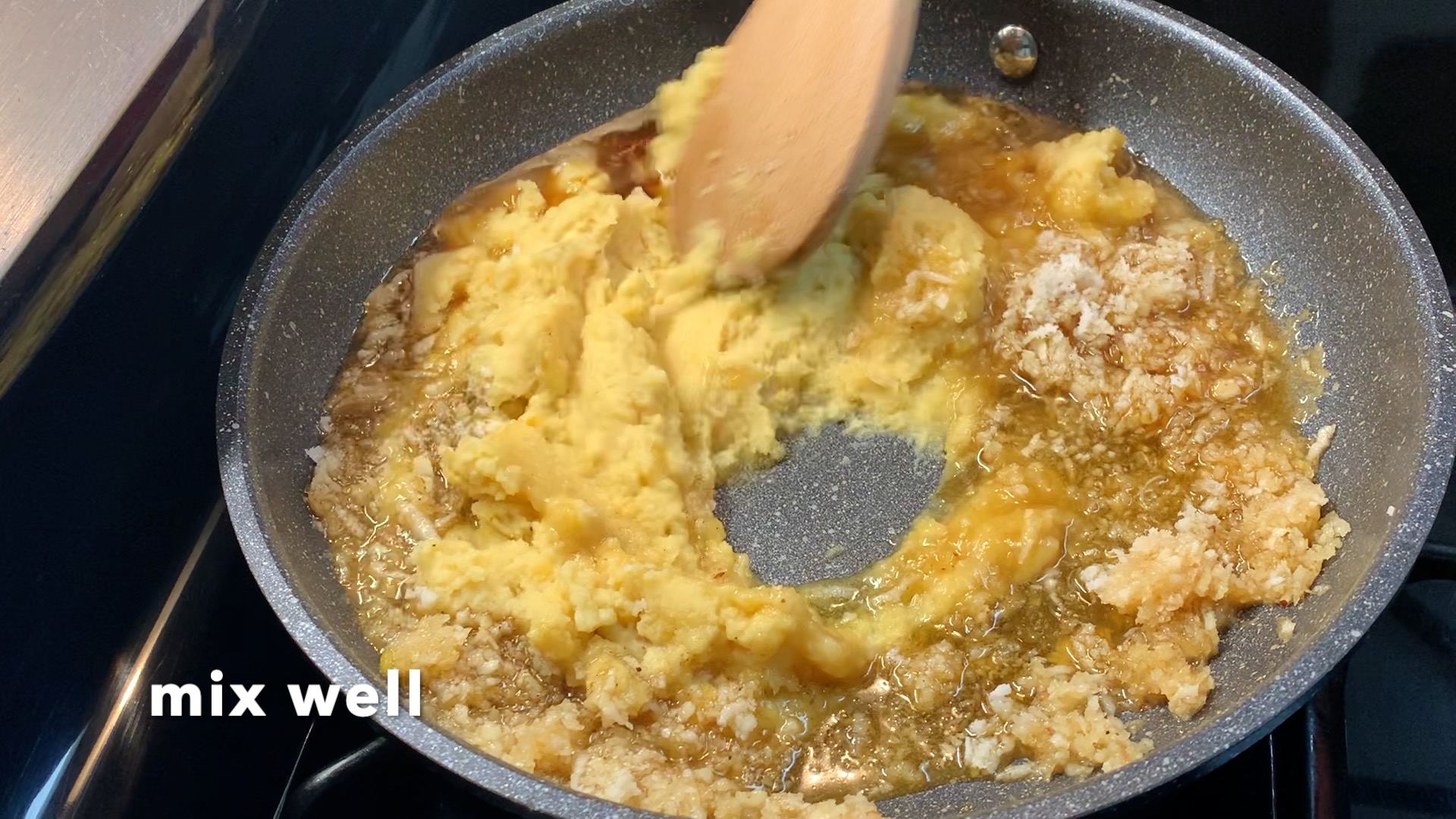 - mix well and cook until the Pooranam leaves the sides of the pan