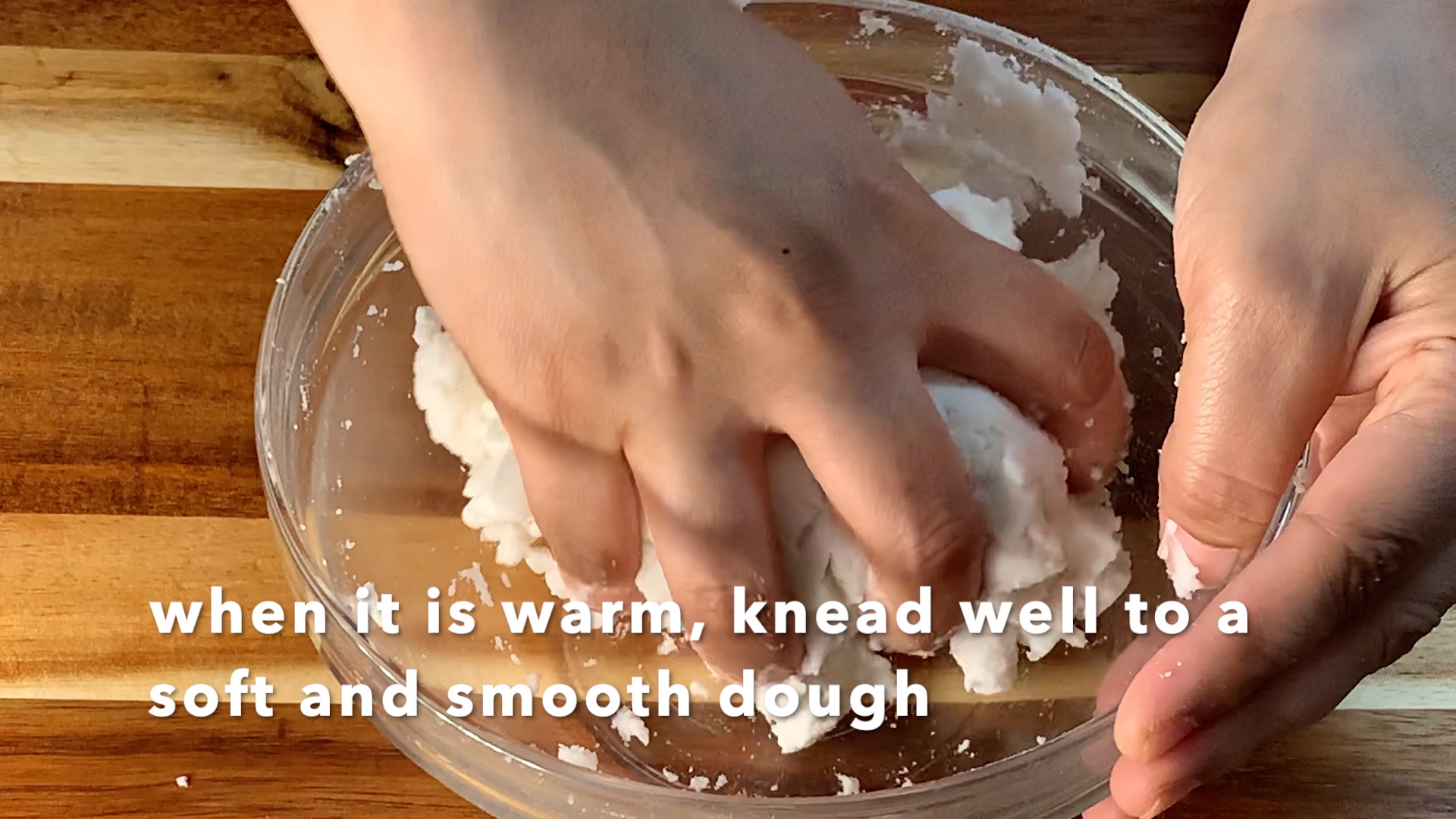 - when it is warm, knead well to a soft and smooth dough, cover with kitchen towel to prevent it from drying