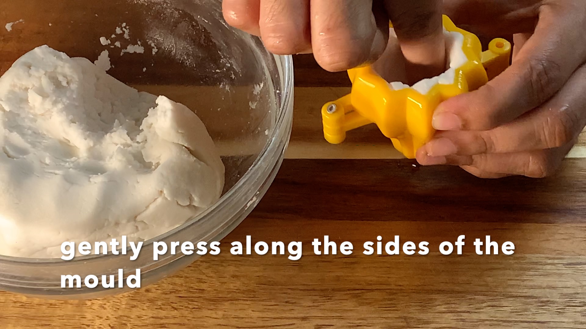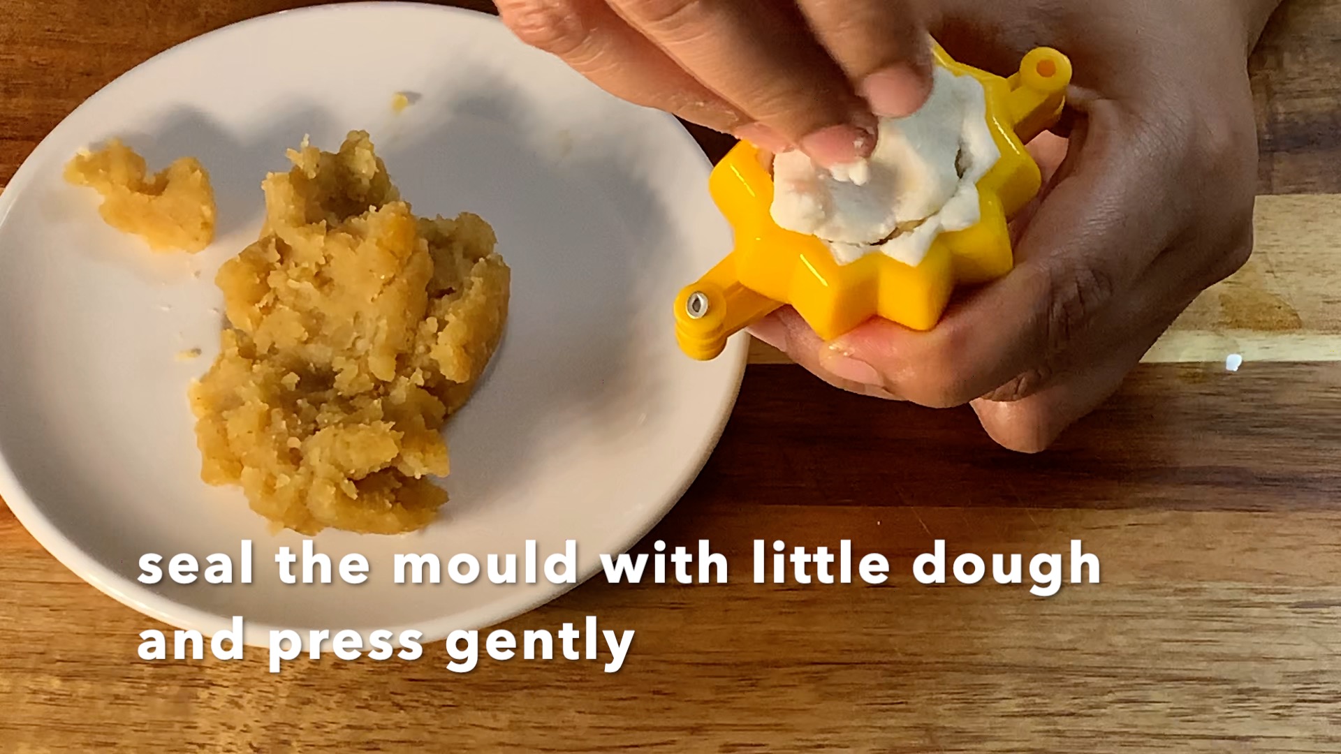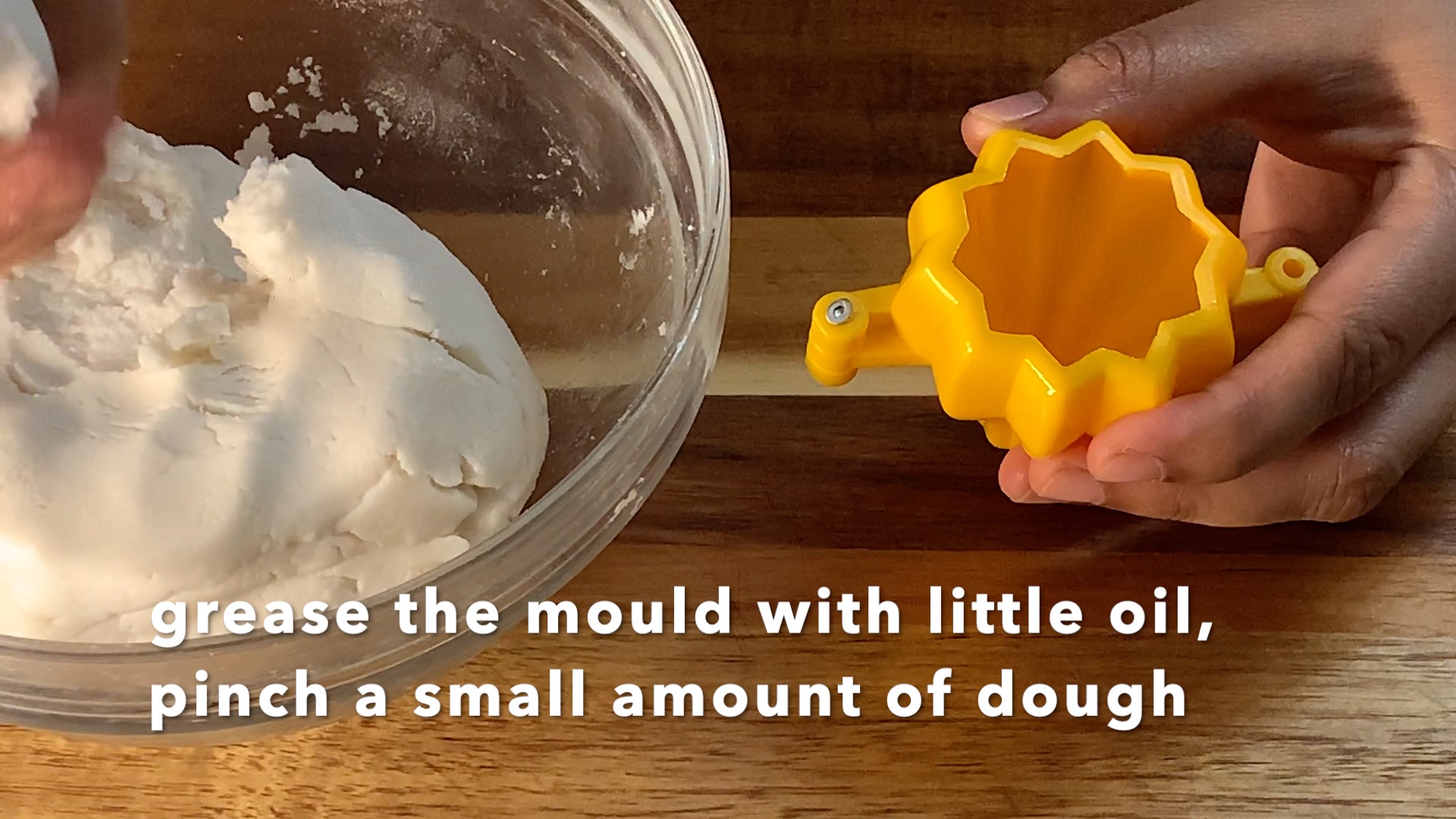 - grease the mould with little oil, pinch small amount of dough and add in the mould