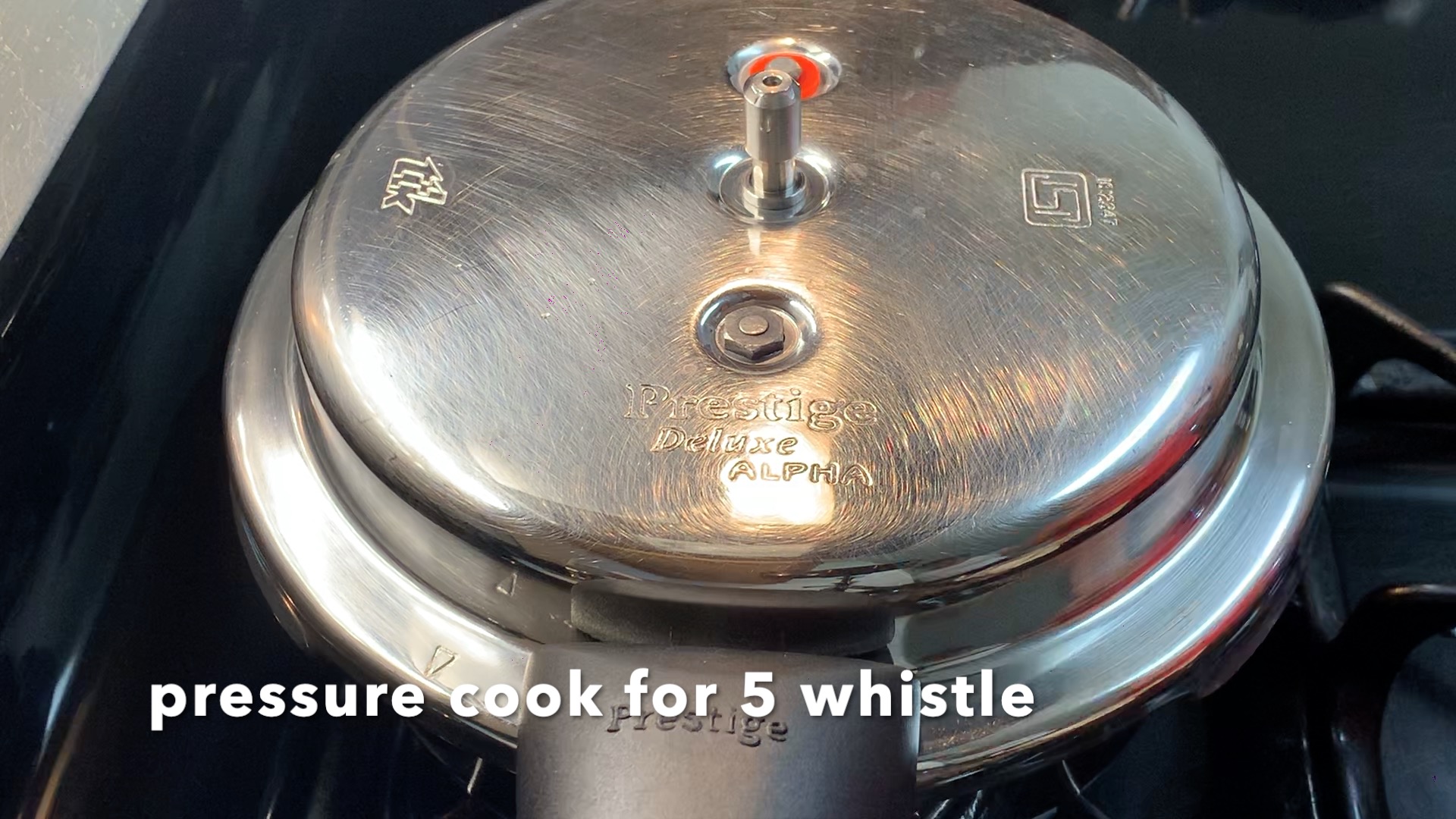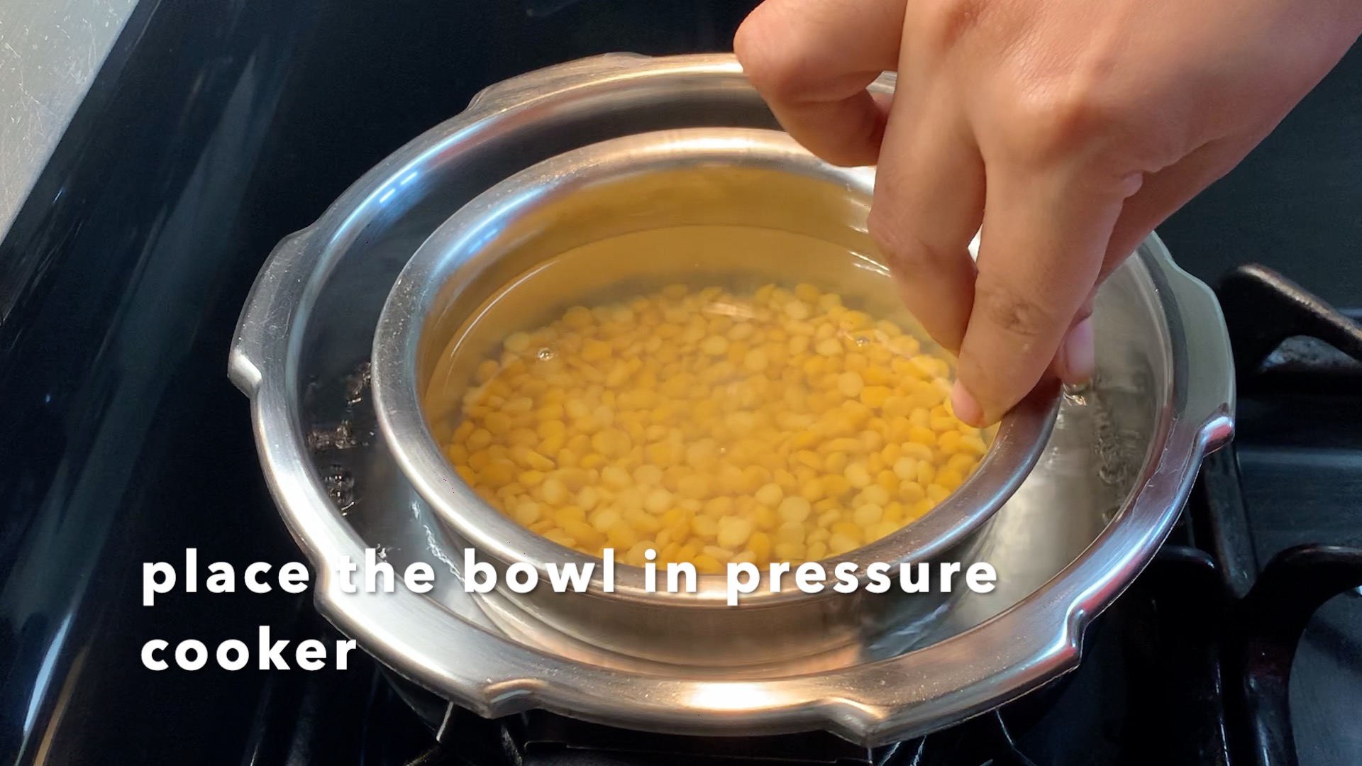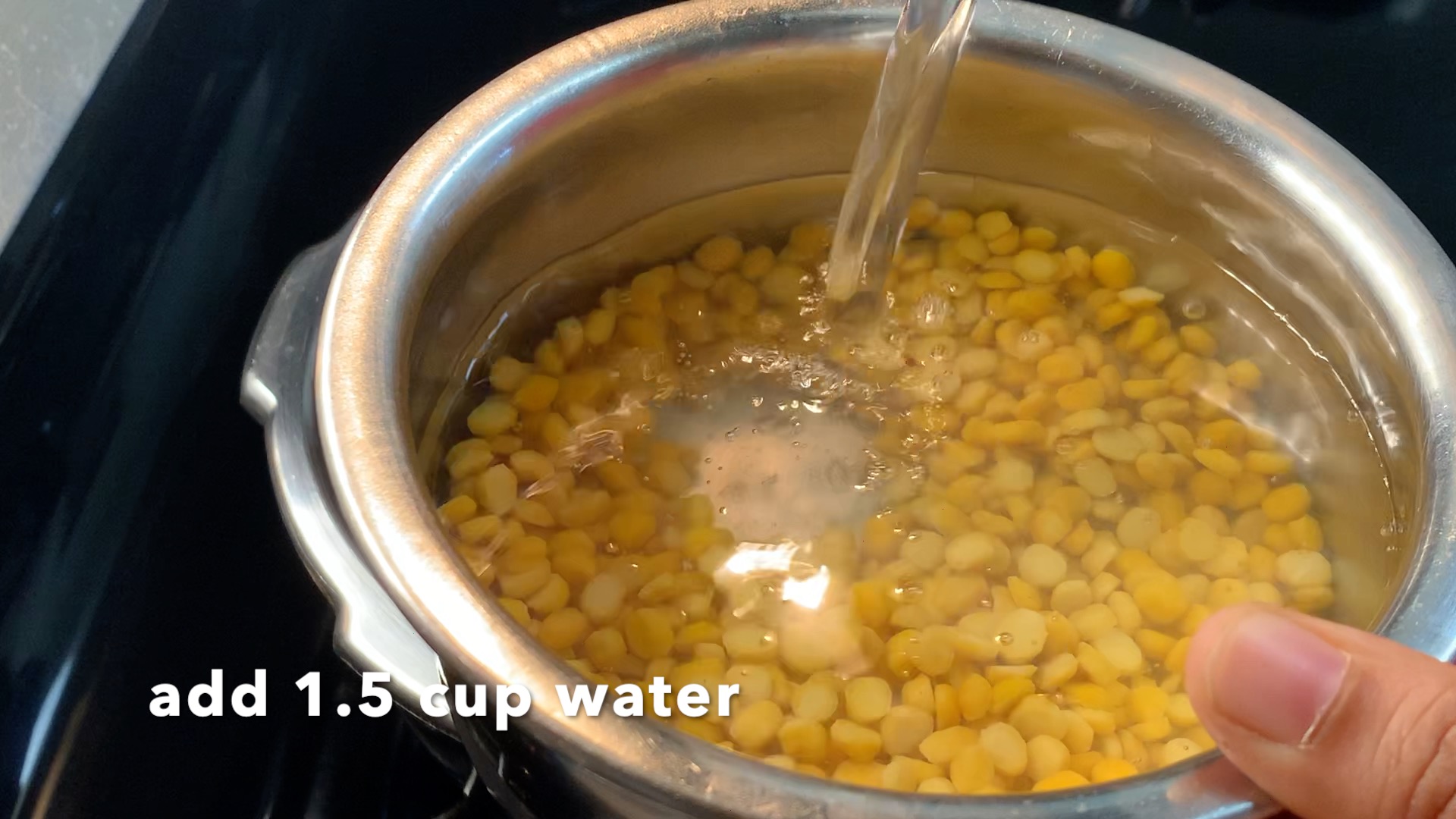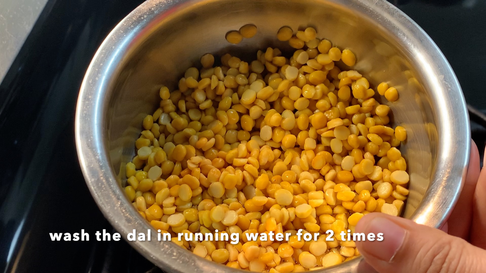 - wash the dal in running water for 2 times and pressure cook dal with 1.5 cup of water for 5 whistle