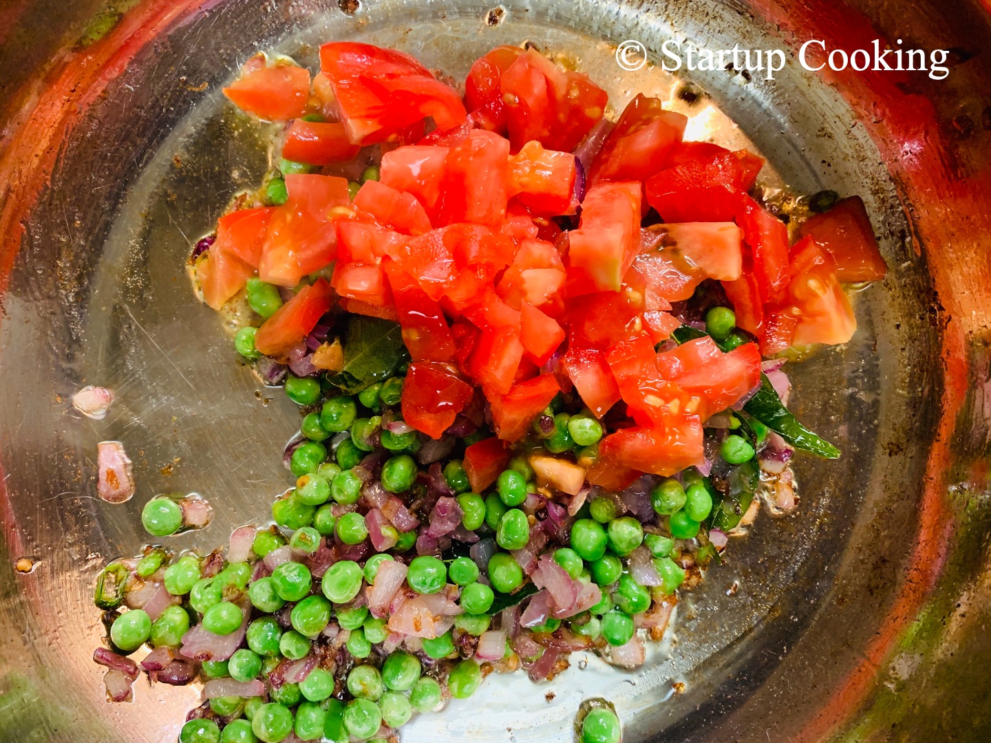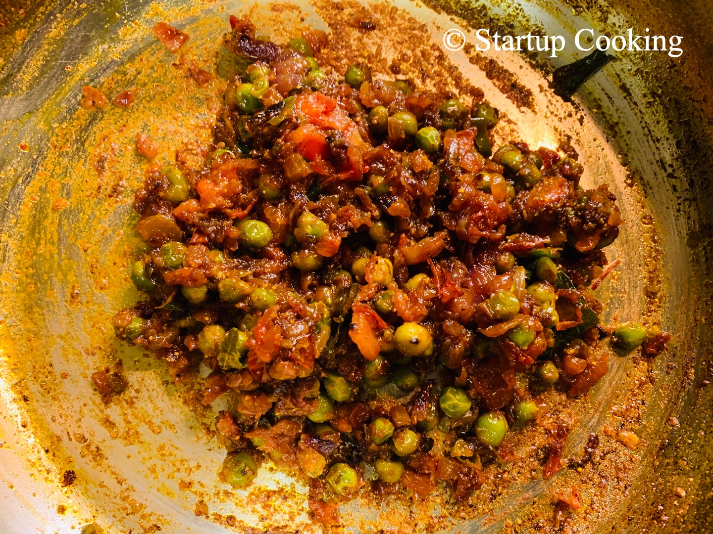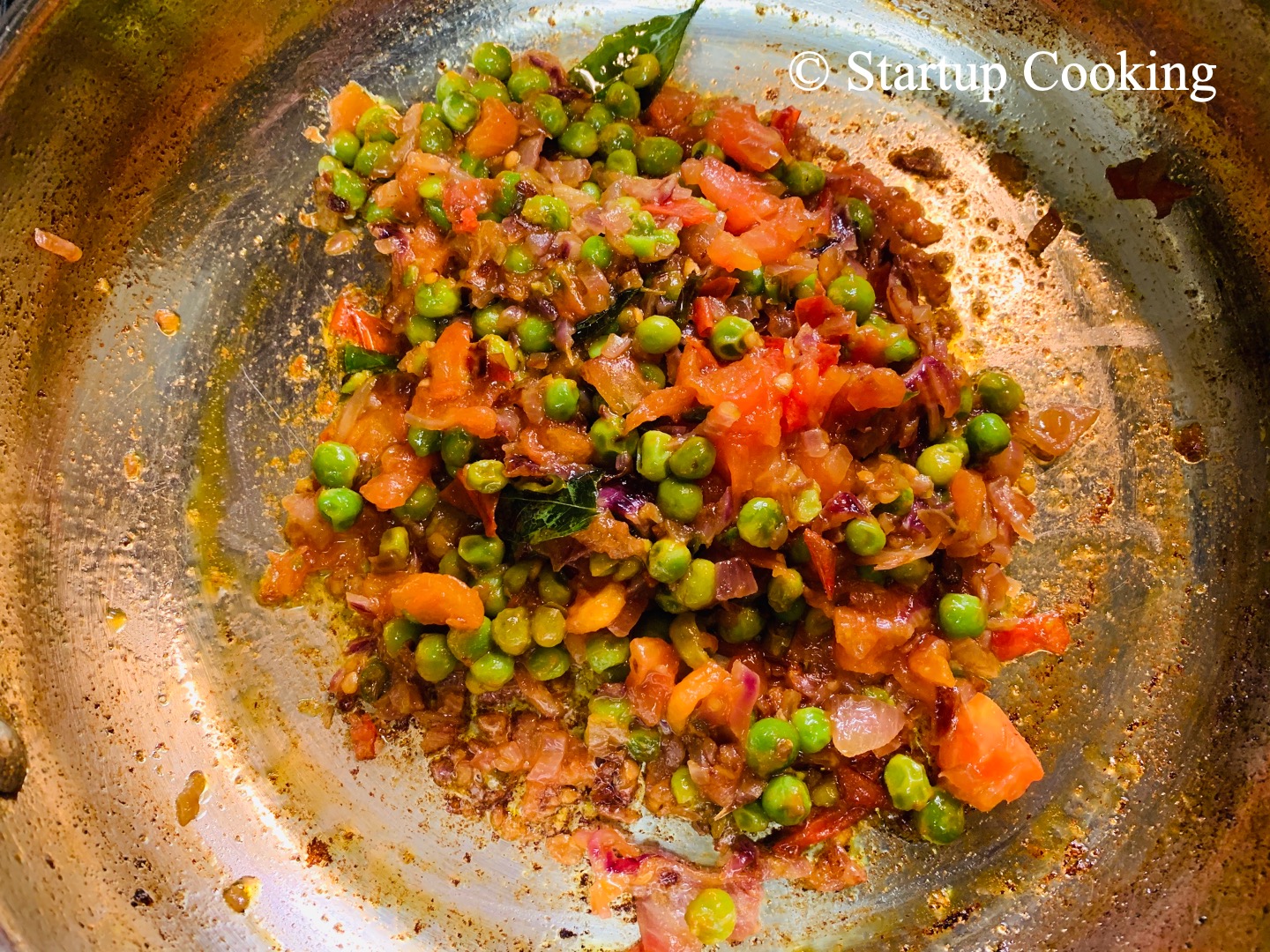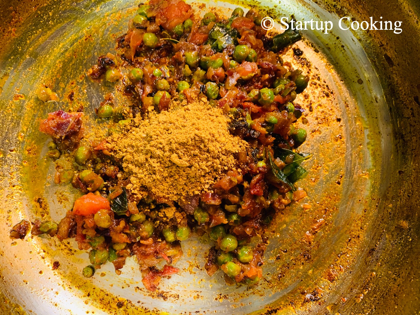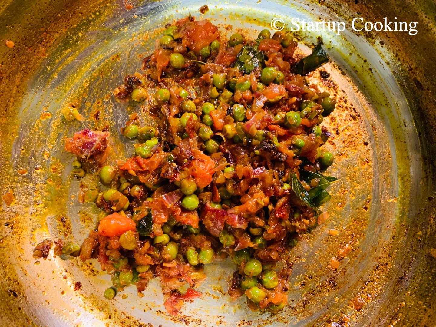 - heat oil in a pan, add chopped onion, green chilli and curry leaves