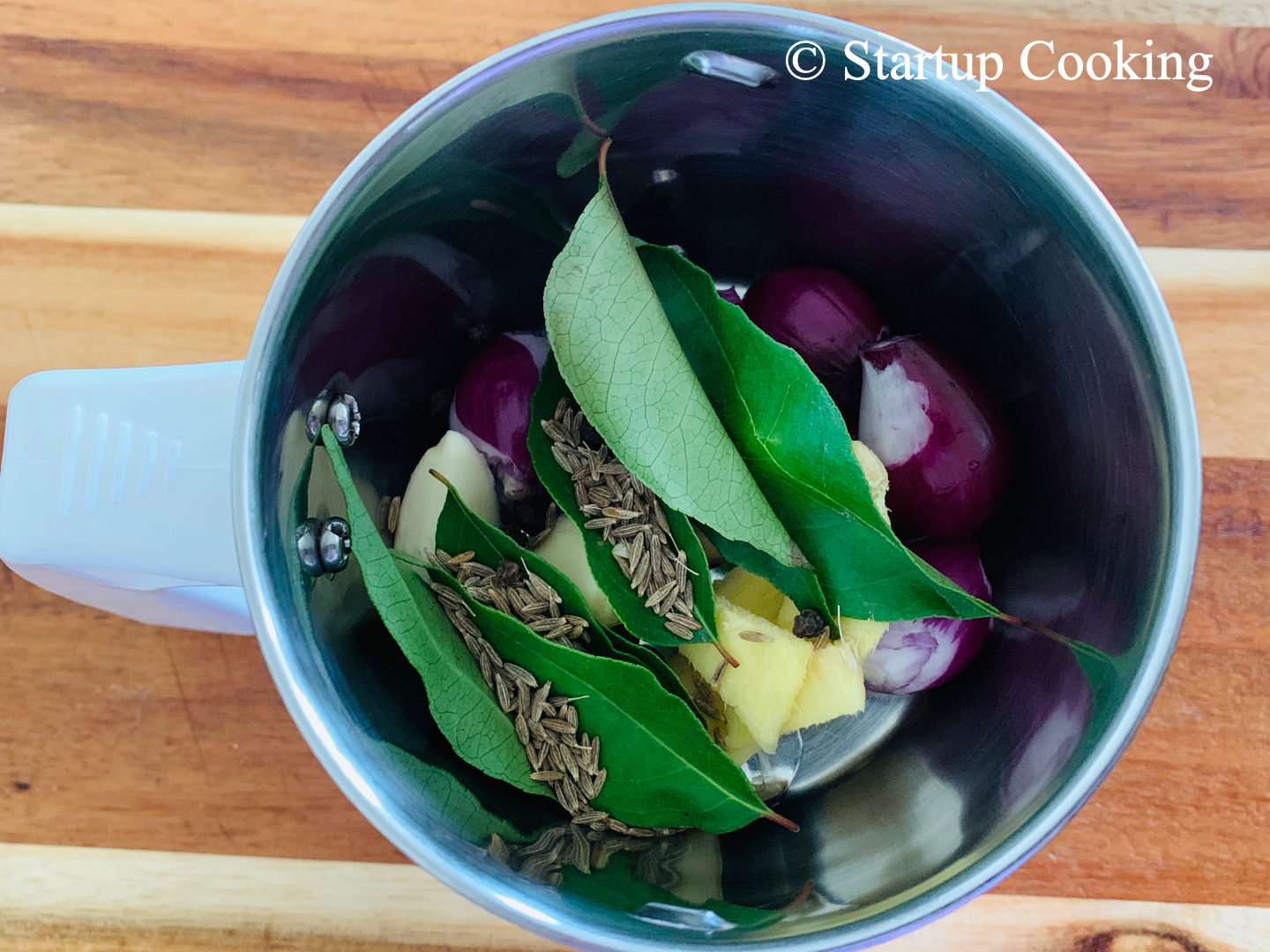 - in a mixer grinder, add shallots, garlic, ginger, curry leaves, cumin seeds and black pepper corn