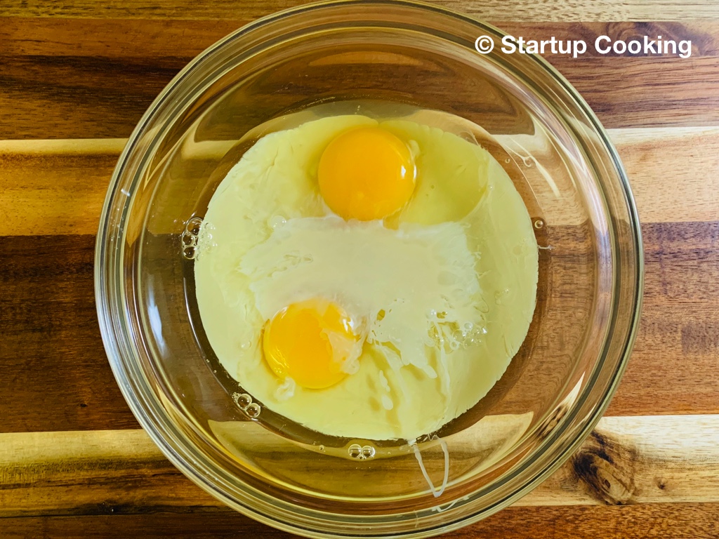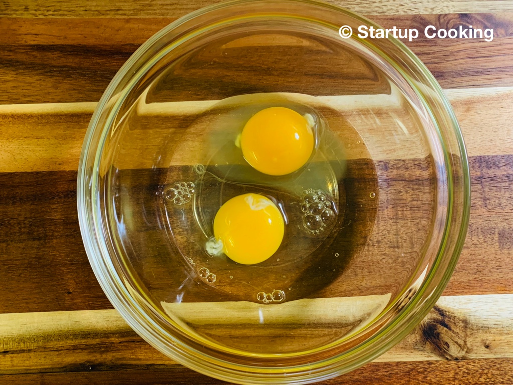 take 2 eggs in a mixing bowl